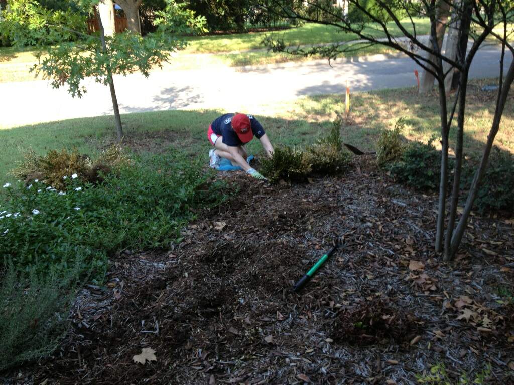 We decided to take a break from working inside and do some yard work and man did that kick my butt! I pulled out all of the dead bushes and some of those roots were so big and tough!! My dad also drove up from Houston to lend a helping hand later in the week!